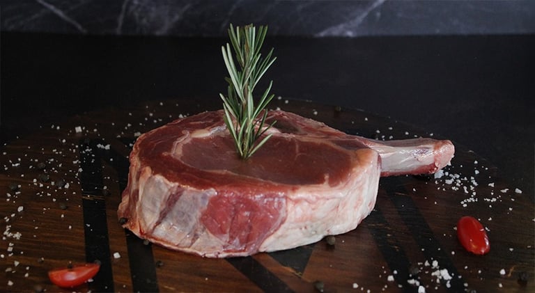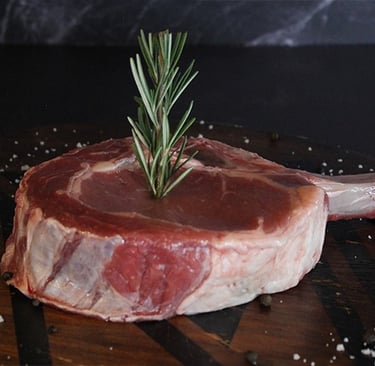Originario de las vastas praderas y las tradiciones de los asados al aire libre, el Corte Cowboy es un filete de costilla con hueso que captura la esencia del espíritu libre y aventurero. Este corte no solo es apreciado por su sabor intenso y su textura jugosa, sino también por la experiencia visual y táctil que ofrece. Con el hueso extendido más allá de la carne, presenta una apariencia impresionante en el plato que es inmediatamente evocadora de las parrilladas al estilo ranchero.